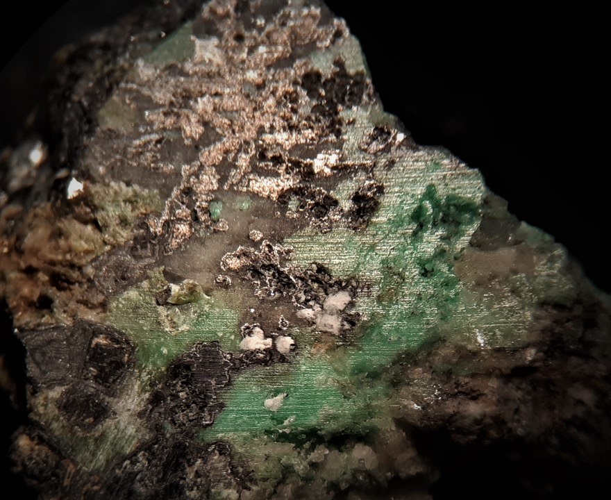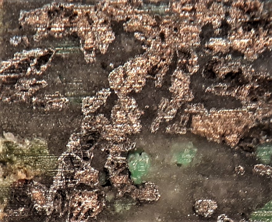 Zunächst mal einen Erzanschliff mit Nickelin,Skutterudit und Annabergit.