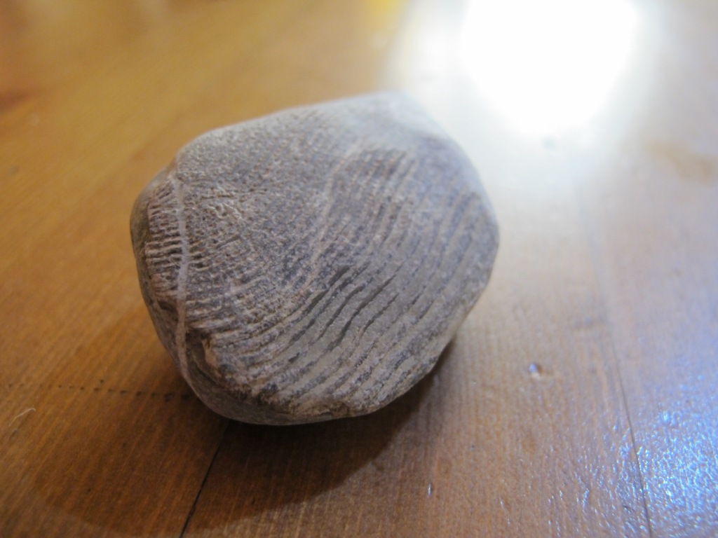 Der hier fasziniert mich ganz besonders, allerdings hab ich keinen Schimmer was das sein könnte. Grauer Stein mit hellen Lammellenartigen Zeichnungen.