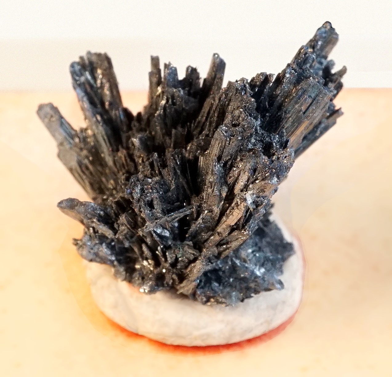 Ein weiteres Stück Mineral, wo mir der Bestimmungszettel vor Jahrzehnten verloren gegangen ist. Irgendwie spukte mir der Begriff "Anti" im Zusammenhang mit diesem Kristall im Kopf herum. Also habe ich nach einem Mineral mit dem Wortteil "Anti" gesucht. Bei Antimonit sah ich eine große Ähnlichkeit. Als Ort glaube ich mich an Mexiko erinnern zu können. Meine Frage: Liege ich hier bei dieser MM Stufe richtig?