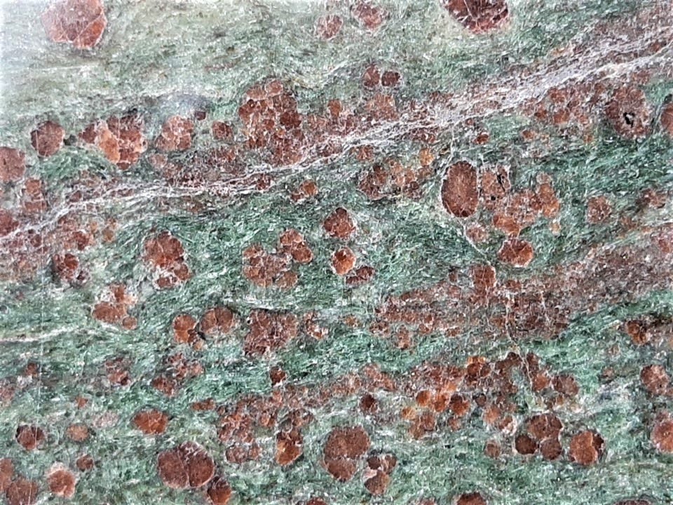 setzt sich hauptsächlich aus rotem Granat und grünen Omphazit zusammen.