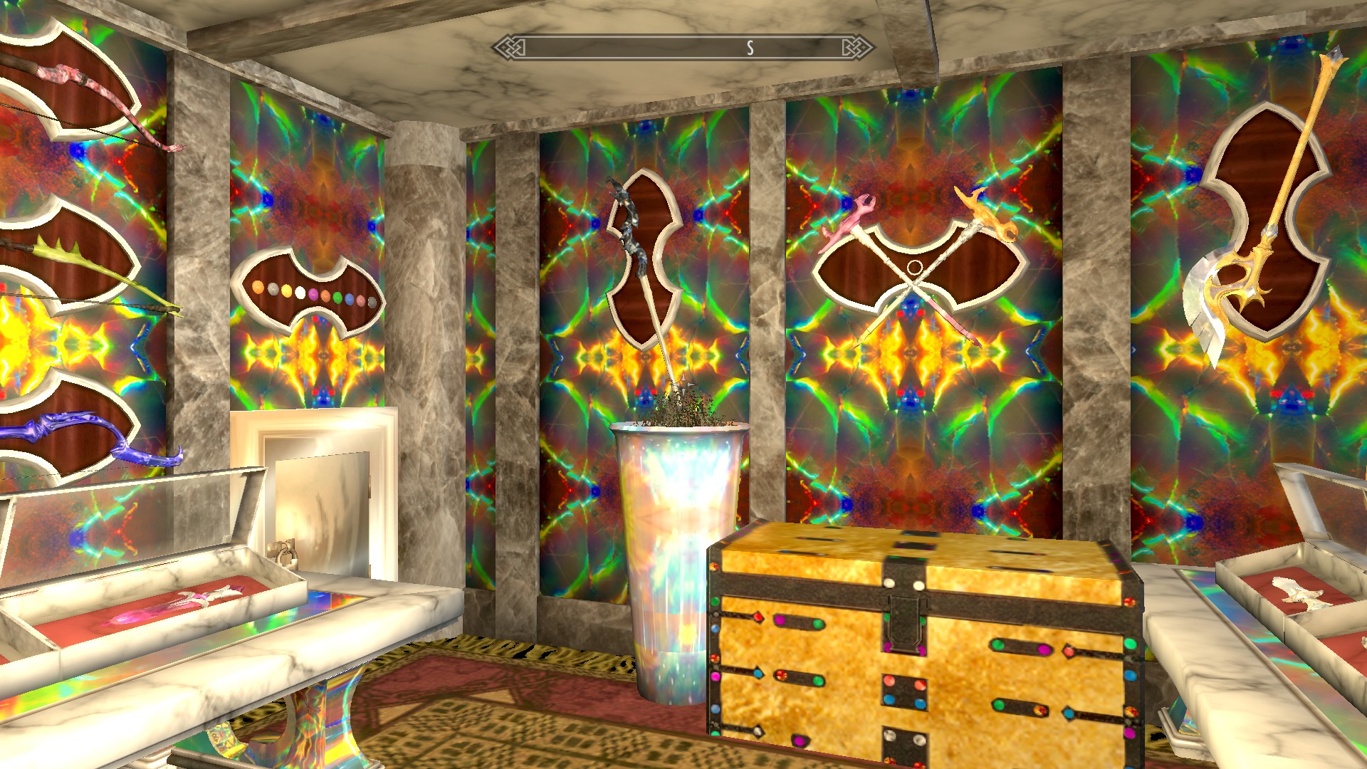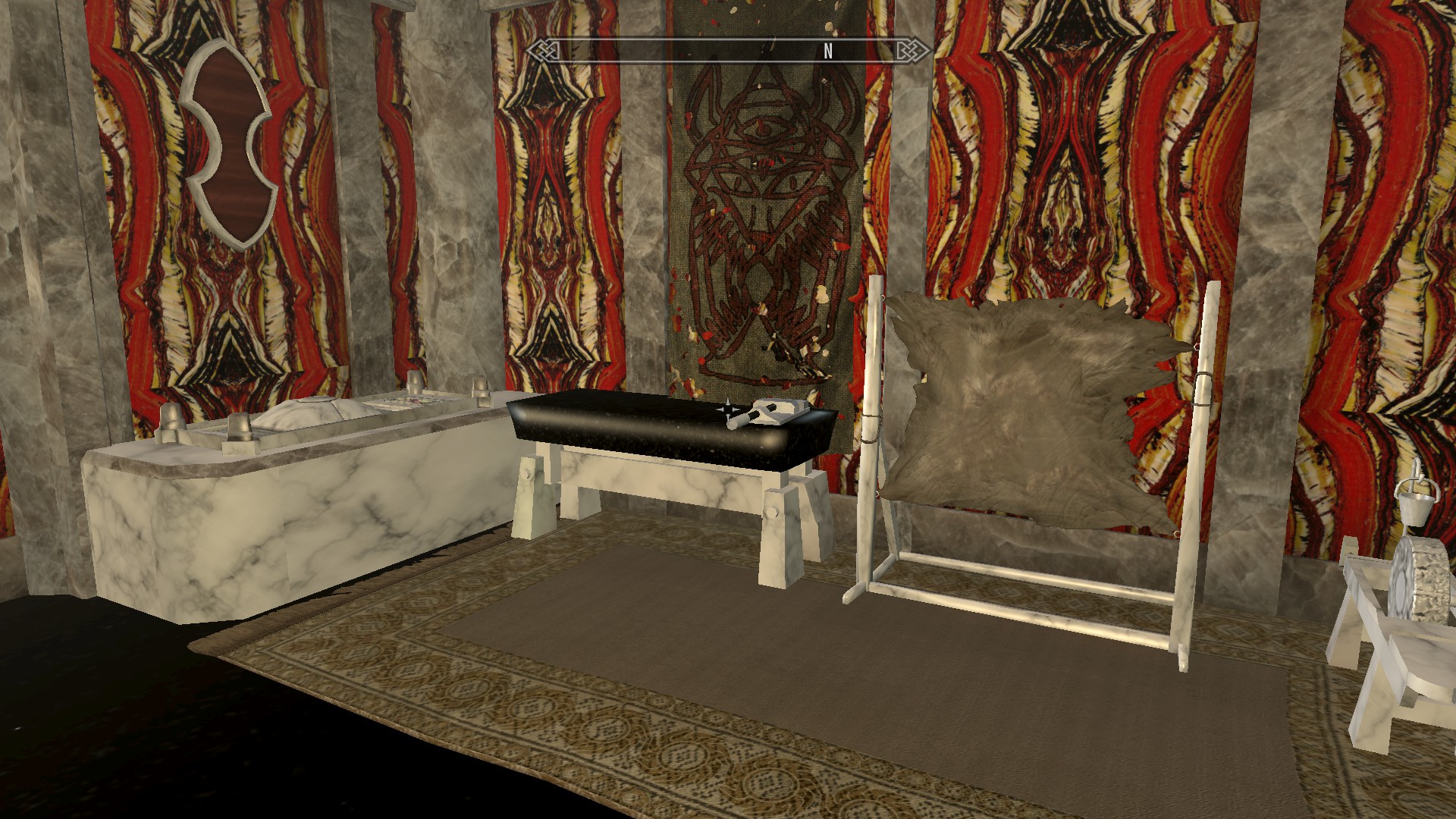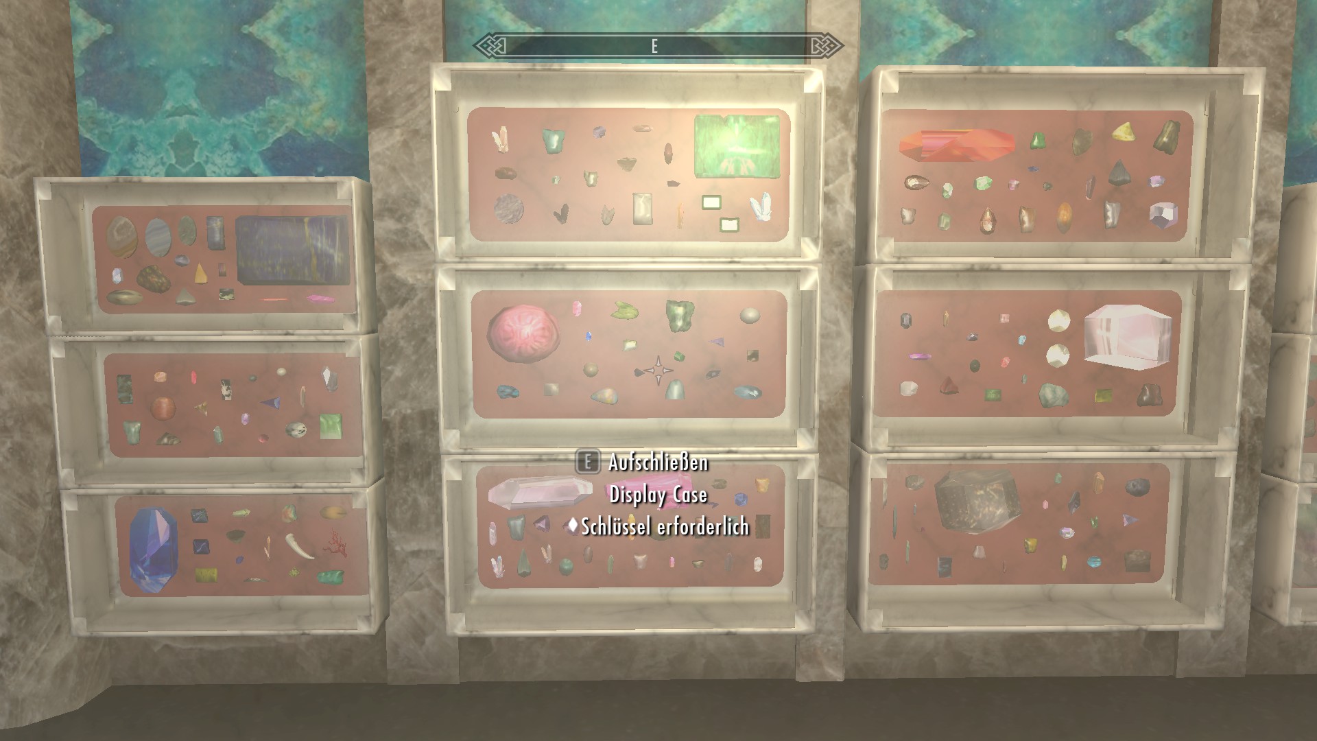 Hier nun einige Screenshots aus einer der neueren Skyrim-Mods mit Namen "The Gemstone Collector" .. man kann in vielen Gegenden des Spiels (primär in Minen) Mineralien und Edelsteine finden, kann natürlich auch verschiedene Roherze finden und diese "zu Hause" in seiner Schmiede schmelzen und daraus "Ingots" (Barren) herstellen (z.B. Goldbarren aus Golderz).