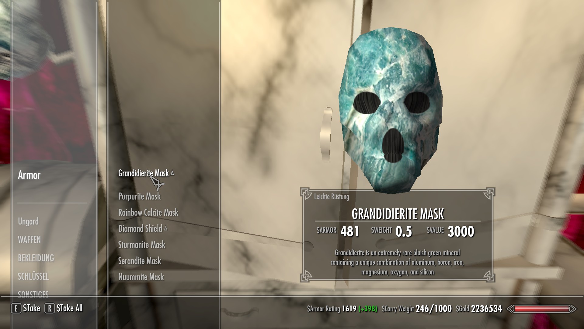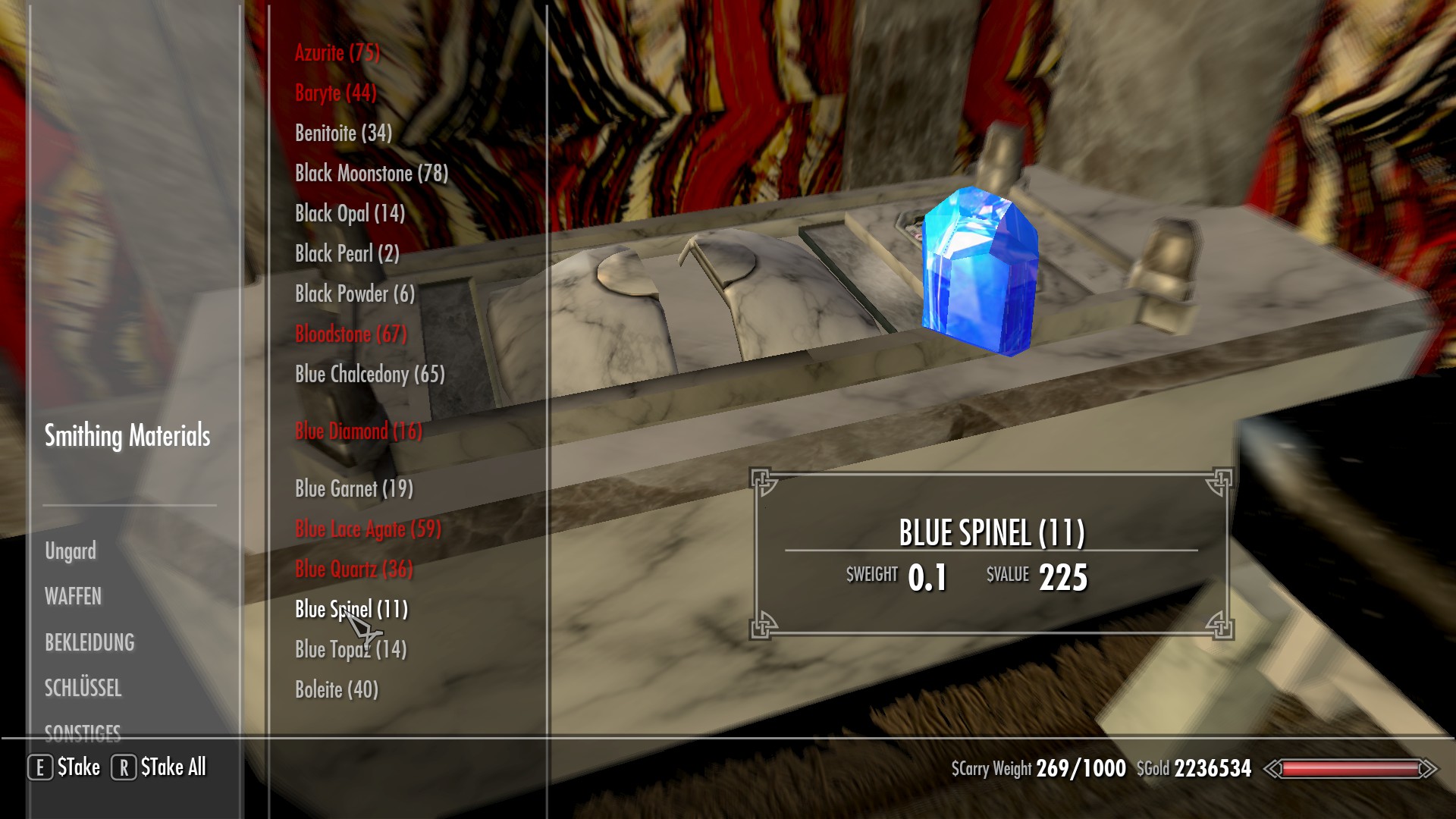 Daraus habe ich schon tolle Waffen oder Rüstungsteile (z.B. "Gauntlets", d.h. Armschutz) schmieden können u.v.m. Aber auch aus verbreiteten Mineralien und Edelsteinen kann man Vieles in dieser Mod herstellen.