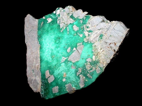 Der sogenannte "Peganit" von Langenstriegis bei Freiberg ist ebenfalls Variscit. Hier eine knapp 5 cm breite Stufe davon. |