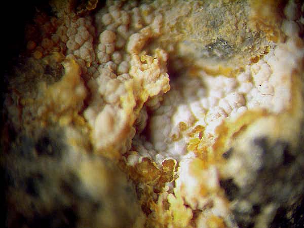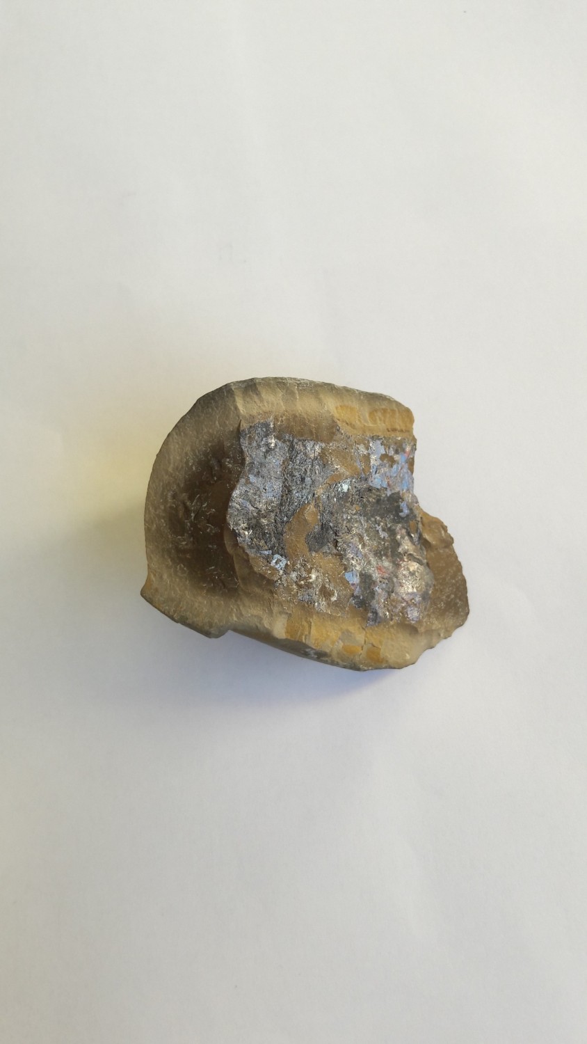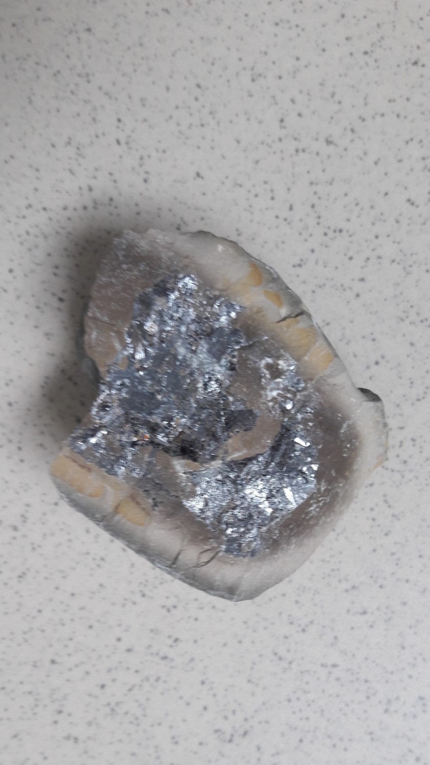 Galenit (Bleiglanz) wird allerdings auch nicht von dort erwähnt. Möglich wären trotzdem noch einige andere Erze (Sulfide), wie z.B. Arsenopyrit, die eine eher grau-metallische Färbung zeigen und die trotzdem nicht in der Mineralienliste zum Fundort erscheinen. Durch die Unschärfe kann ich auch keine typische Parkettierung, wie bei Bleiglanz üblich, erkennen.