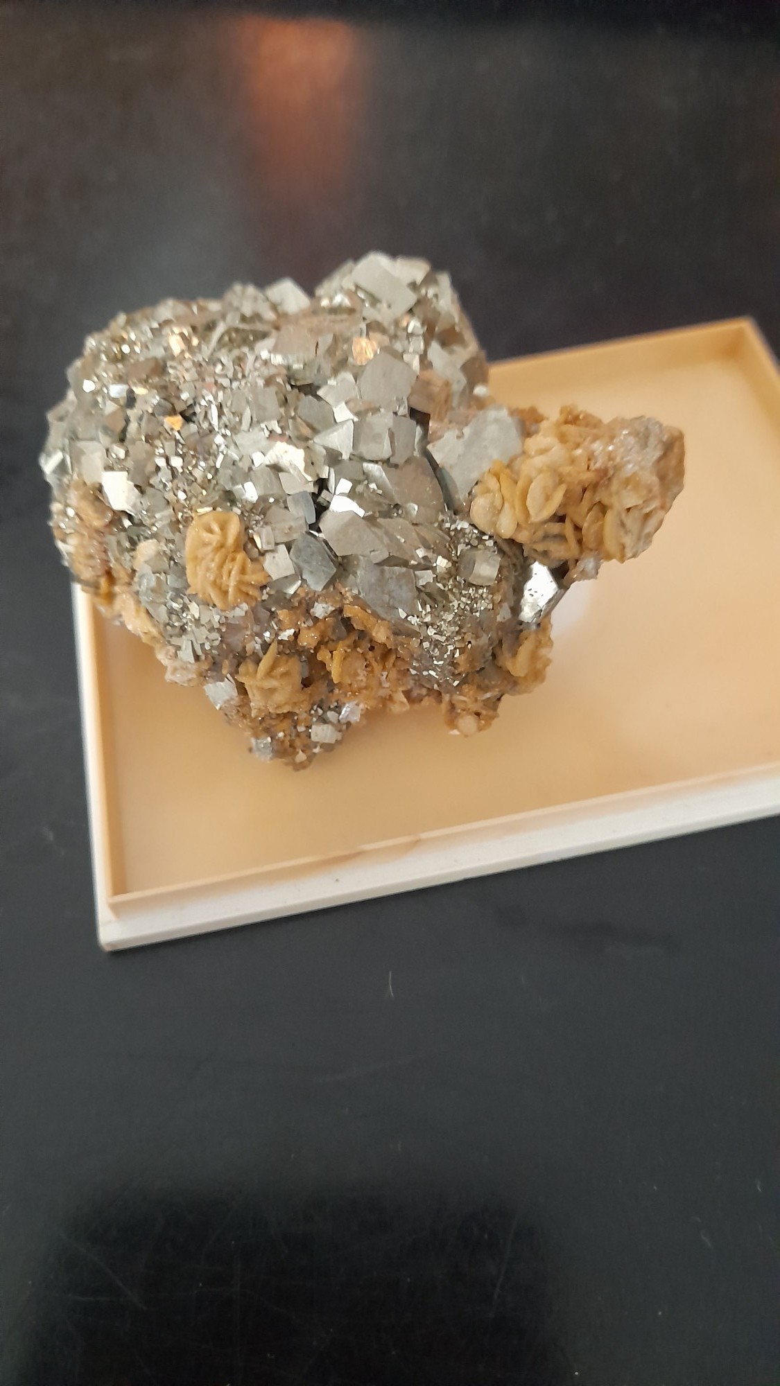 Ich bin mir auch nicht ganz sicher, ob da die Aggregate als Begleiter des Pyrits nicht auch Baryt- oder Calcit-Rosetten darstellen könnten. Ich empfehle da mal einen Salzsäuretest. Baryt ist ein Bariumsulfat, während Calcit und Siderit Carbonate darstellen. Diese müssten dann bei Zufuhr von 1-2 Tröpfchen HCL (Salzsäure) schäumend aufbrausen. Wenn Baryt, dann kein Schäumen und Aufbrausen!