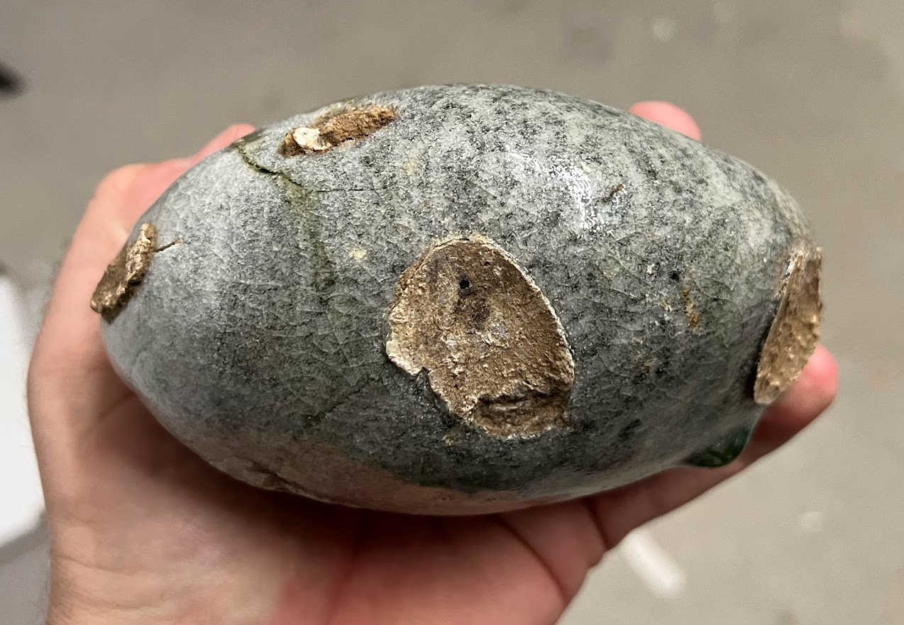 Es wirkt so, als wäre der Stein komplett mit einer Schicht von ca. 2-3 mm Glas überzogen.