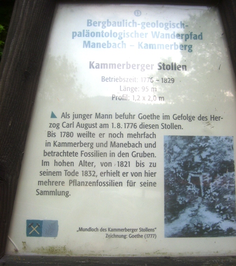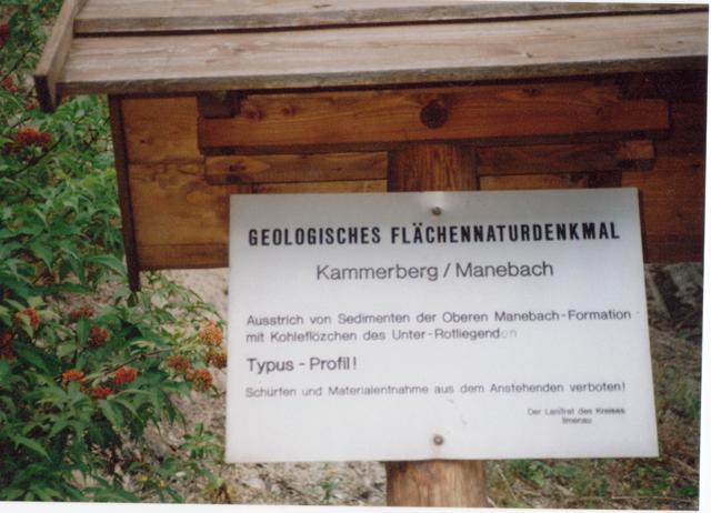 Der alte Steinkohlenbergbau von Manebach liegt schon lange zurück. Zu letzt wurde in den Nachkriegswintern nach den Kohlen zum Heizen gegraben. Viele schöne Fossilienabdrücke im Schiefer machten Manebach weltberümt. Schon von Schlotheim beschrieb damals diese Lagerstätte. Die Kohlen sollten eigentlich für die Glashütten Verwendung finden, aber die sehr schlechte Qualität der Kohle machte den Schmelzprozeß zu nichte.