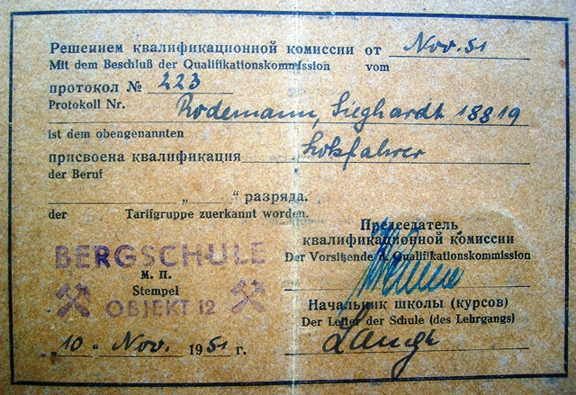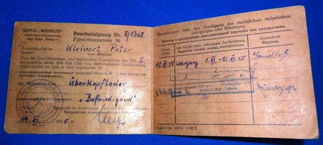 Auch die wichtigen Qualifizierungsnachweise im Bergbau gehören hier her. Hier mal zwei Beispiele aus der Wismut.