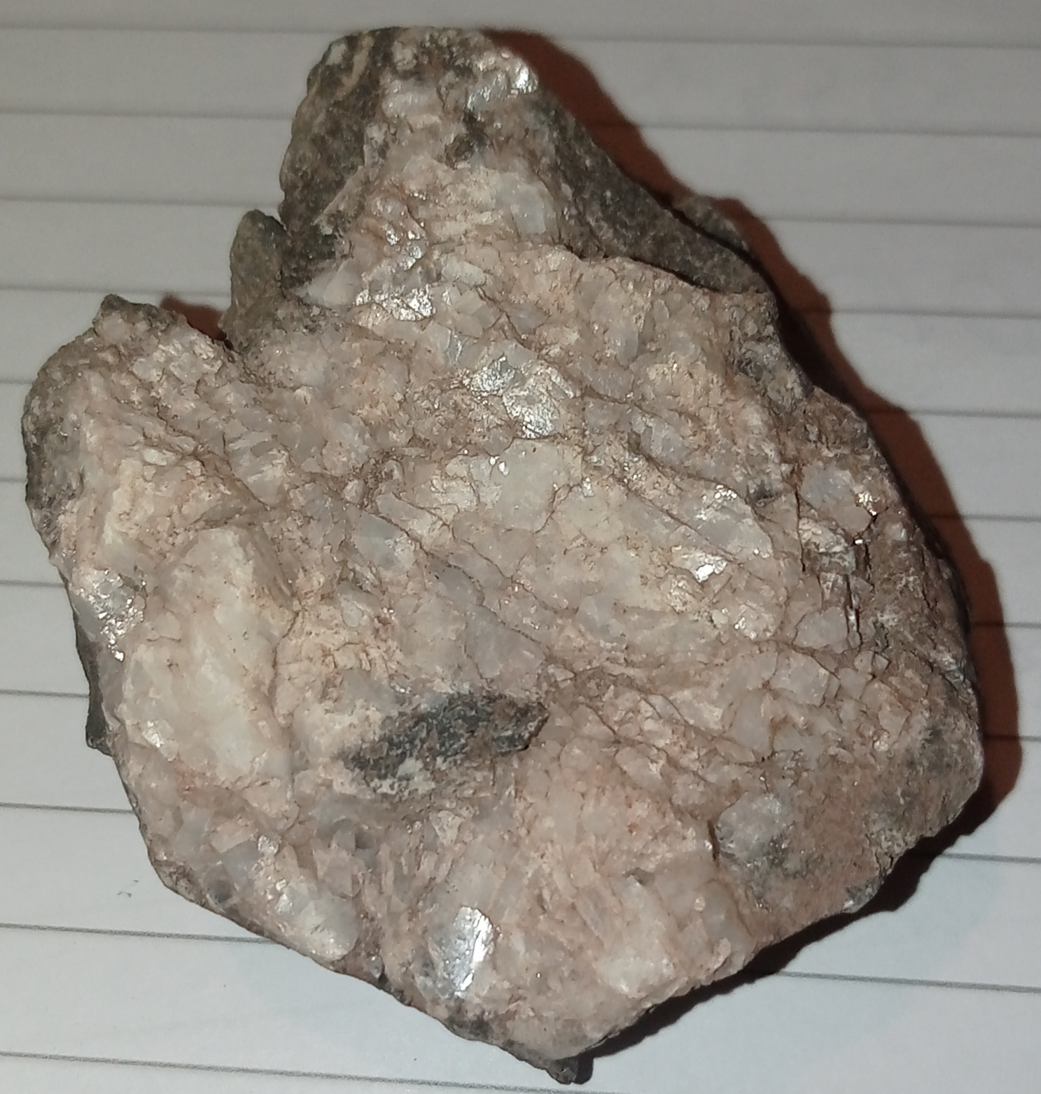 Das zweite Stück sollte in der Tat derben Quarz/Milchquarz zeigen, die glitzernden Stellen könnten die Muskovit-Varietät Serizit (Hellglimmer) zeigen.. es könnte aber auch nur eine Reflektion aufgrund der nicht optimalen Handyaufnahme sein.