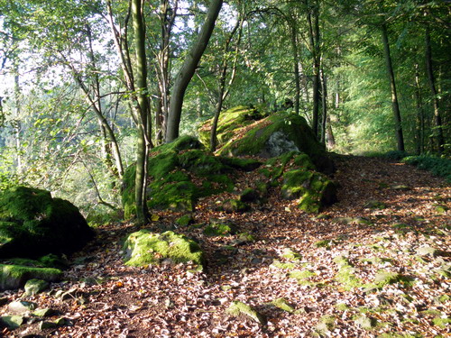 Etwas abseits vom Weg befindet sich im Wald ein von Sammlern angelegtes Schurfloch.Schwer zu erkennen,weil es von Laub