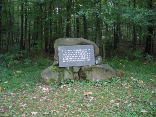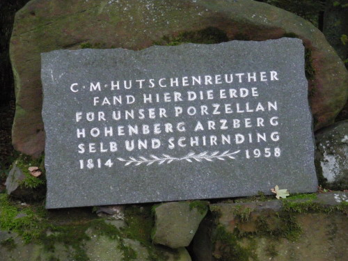 Ein Denkmal aus Basalt erinnert an C.M.Hutschenreuther und seine Kaolin-Grube.