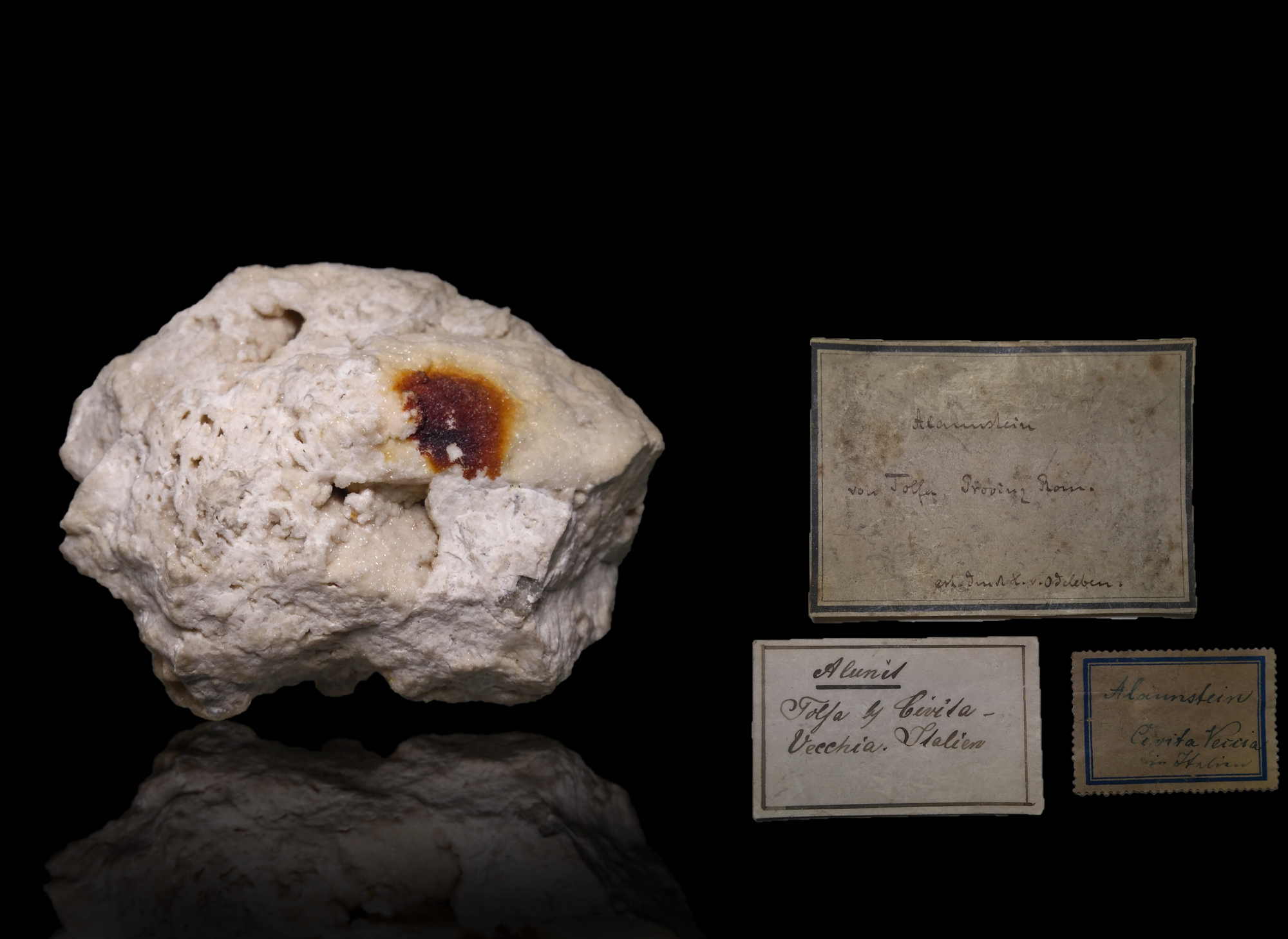 Bei der Durchsicht meiner Schubladen mit älteren Sachen in der Sammlung bin ich auf eine Stufe mit Alunit xx von der TL Tolfa bei Rom gestoßen. Aber wenn ich mir diese Kriställchen näher anschaue, kommen mir schon Zweifel an der richtigen Bestimmung. Alunit kristallisiert trigonal. Diese xx sehen eher monoklin oder orthorhombisch aus.
