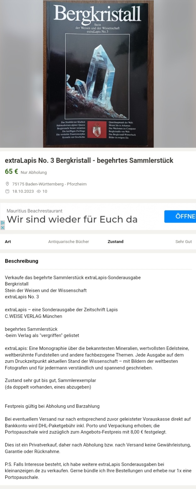 Anzeige auch bei Kleinanzeigen.de online nachlesbar
