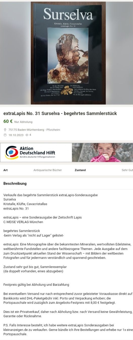 Anzeige auch bei Kleinanzeigen.de online nachlesbar