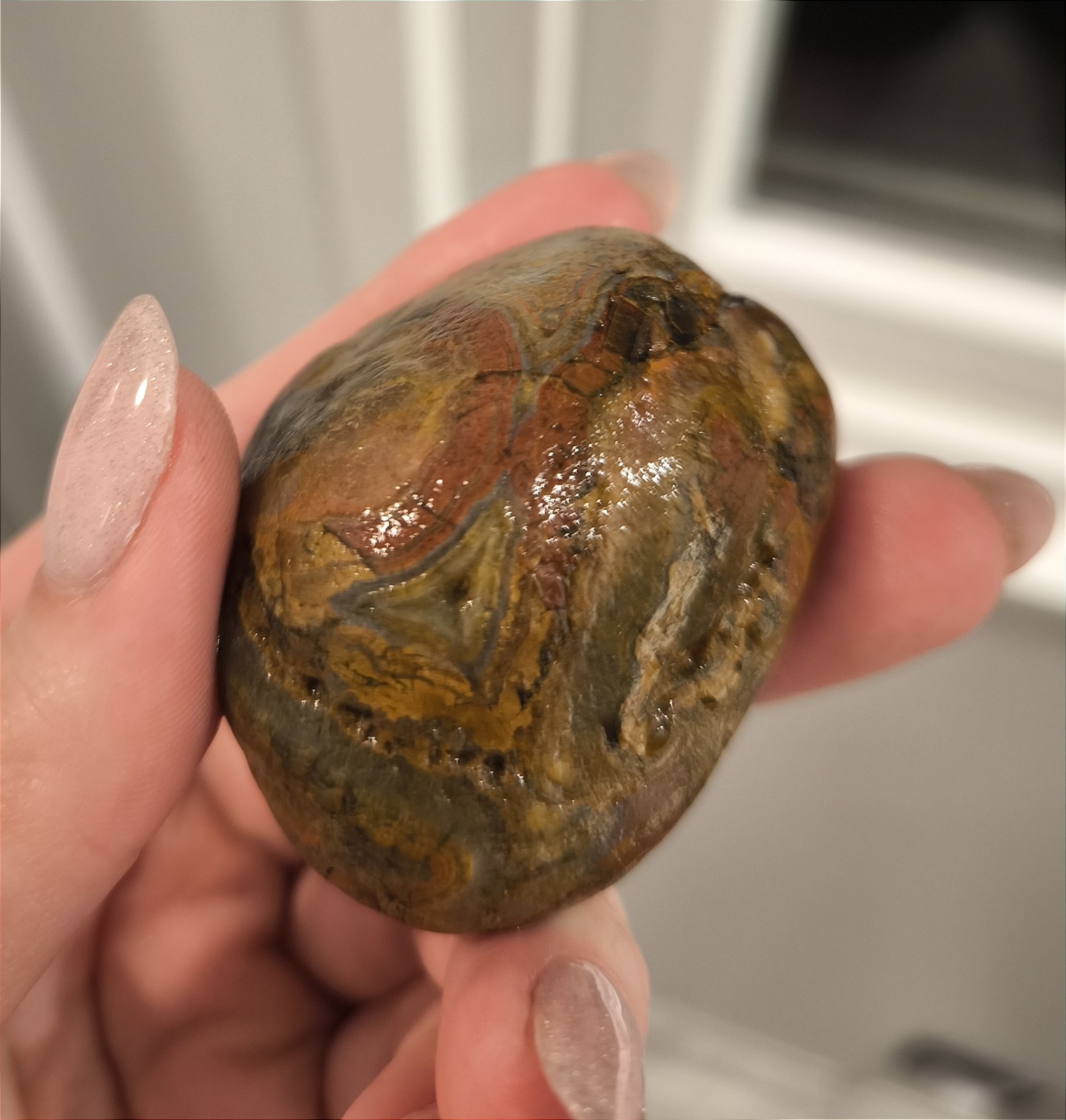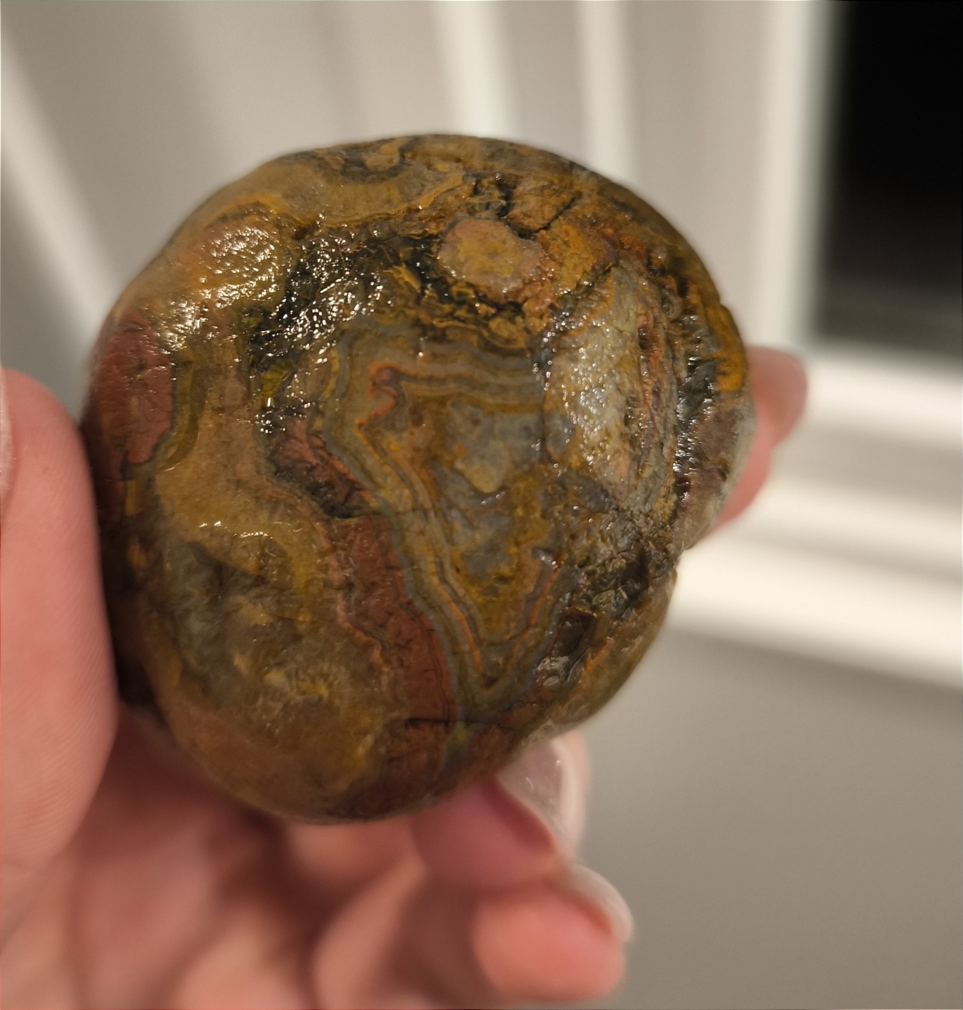 Ich bin aktuell in Frankreich, Montalivet an der Atlantikküste und bin ziemlicher Anfänger in der Bestimmung von Steinen und Mineralien. Mich fasziniert es aber und ich würde gerne dazu lernen! Deshalb: Kann mir jemand sagen, was ich gefunden habe ? Mein erster Gedanke war ein Achat oder Jaspis, oder eine Mischung ? Auf jeden Fall sieht man ja deutlich die tolle Bänderung.