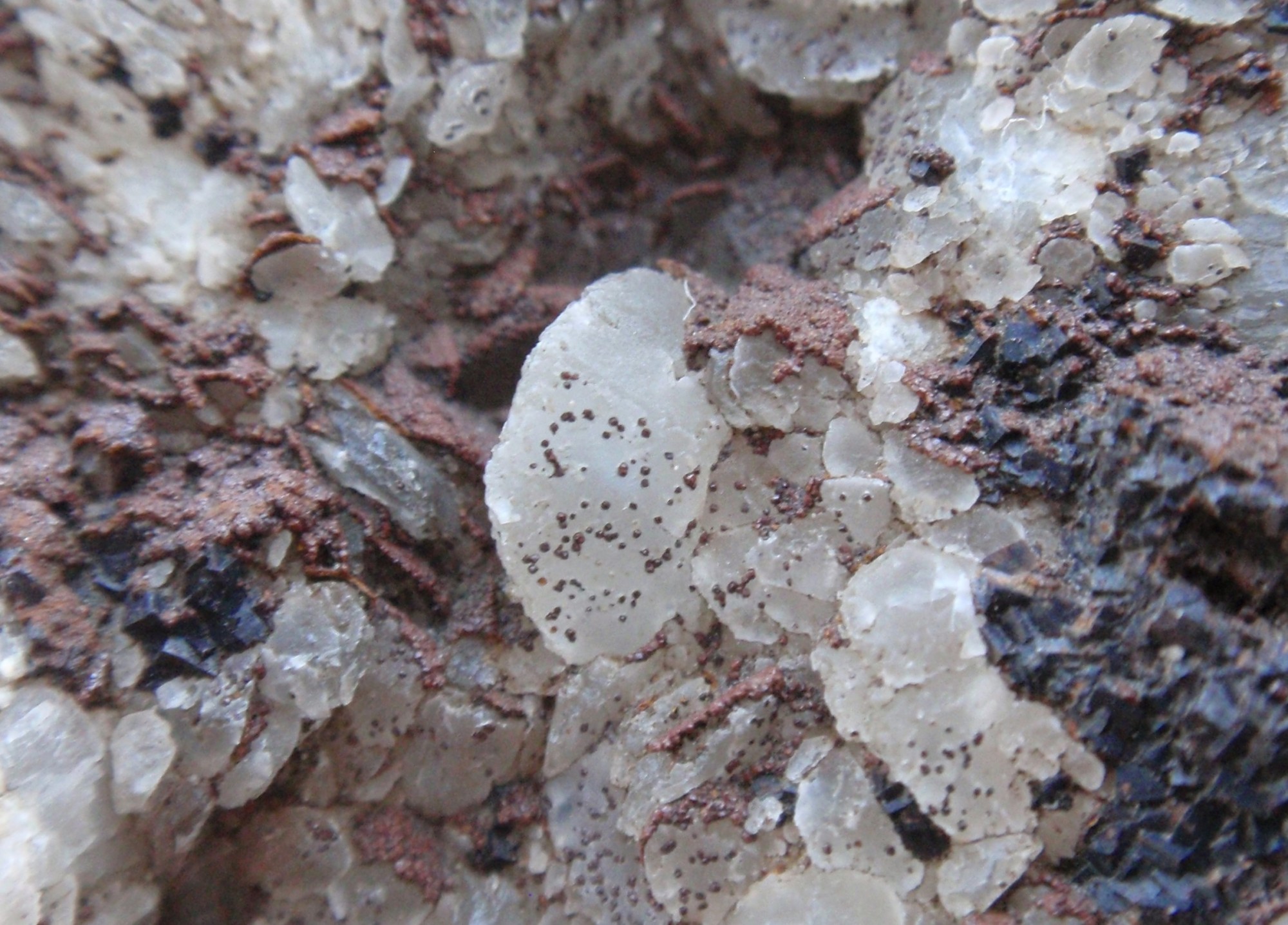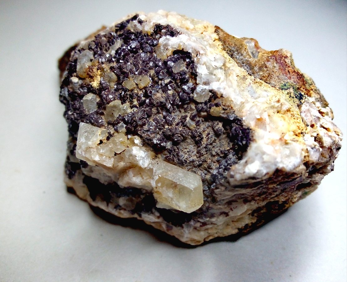 2. Calcit xx, größter Kristall 4 mm, Siderit