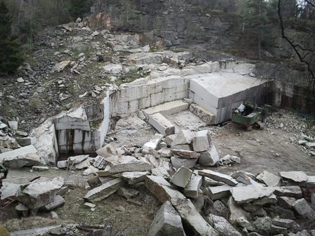 Der Epprechtstein erhebt sich wenige Kilometer südwestlich von Kirchenlamitz im Norden des Fichtelgebirges und ist mit der Burgruine schon weithin sichtbar. Schon im 13 Jahrhundert wurden dort (meist illegal) Findlinge zerlegt und als Baumaterial verwendet, z.B. für die besagte Ruine. Erst 1721 wurde der Raubbau beendet. Von da an durften nur noch berechtigte Personen in begrenzten Gebieten Granit abbauen. Als dort die Findlinge weg waren, wurde der Granit in die Tiefe verfolgt und es entstanden die ersten Steinbrüche. Es gibt Ca. 20 mit Namen belegte Brüche und noch mehr kleine, von denen einige wieder verfüllt wurden. Aktuell wird in 2 Brüchen mehr oder weniger regelmäßig Granit abgebaut.