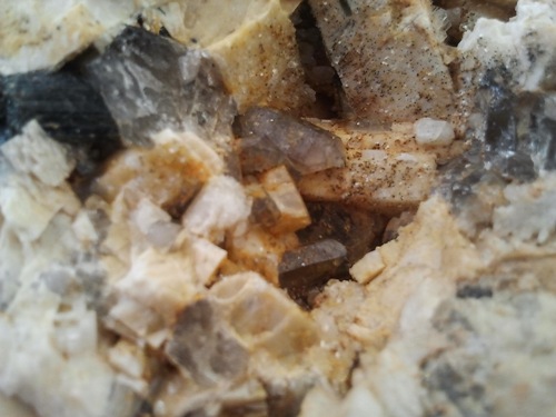 In den hydrothermalen Adern und Pegmatischen Drusen sind viele Mineralien bekannt: