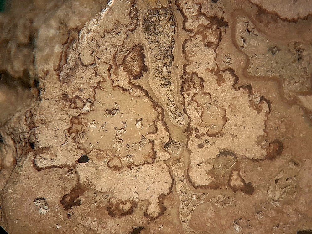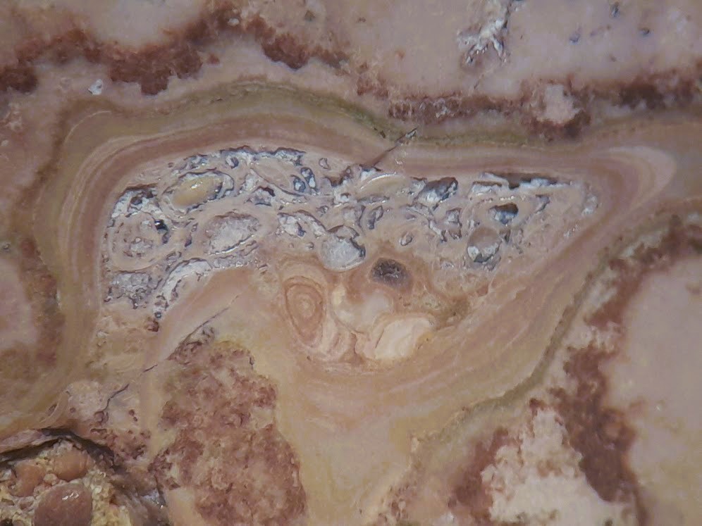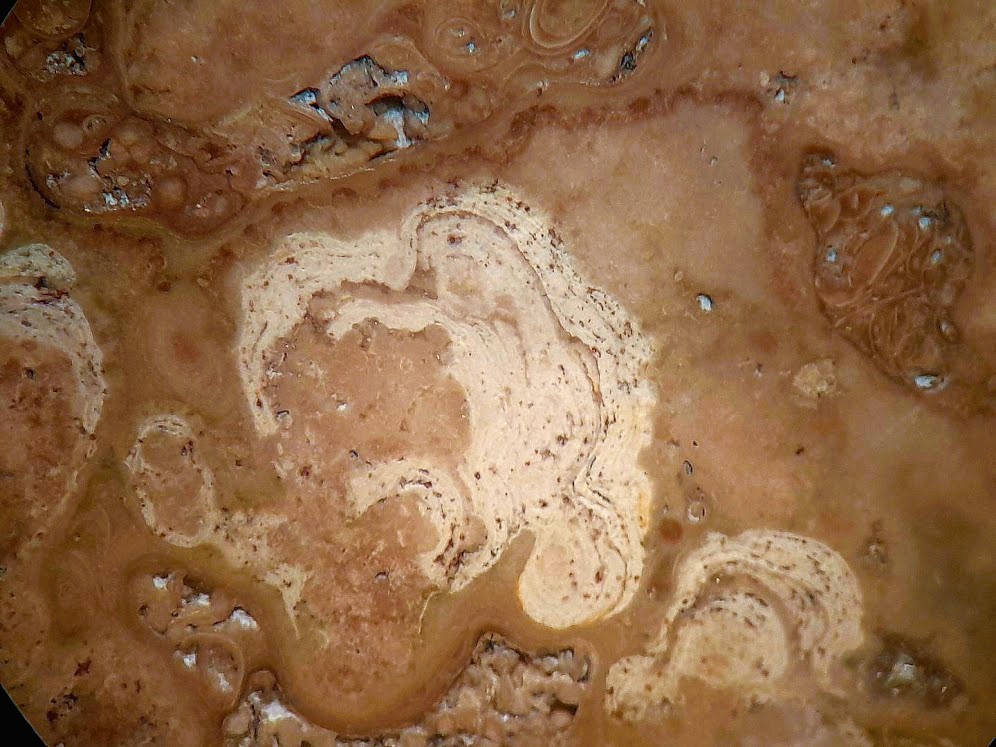 Jetzt hab ich aber von einem Kollegen ein Belegstück mit Stromatolithenkolonien von dort bekommen. Zwar auch nur mit der vagen FO-Angabe "Feldfund nördlich von Eger" , aber jetzt weiss ich immerhin, wie die Stromatolithen von dort aussehen.