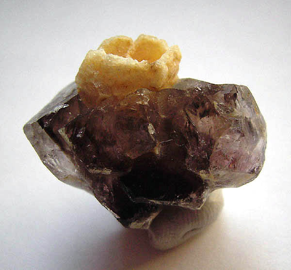 Seit SCHARFF (1854/55) werden solche Kristalle "Kappenquarze" genannt, da sie durch Inhomogenitäten auf den Rhomboederflächen (z.B. Tonminerale, Brauneisenstein) bedingt, eine erhöhte Teilbarkeit entlang dieser Flächen aufweisen, so dass sich gelegentlich die äußere Kappe bzw. Haube eines Kristalls lösen und abheben lässt.