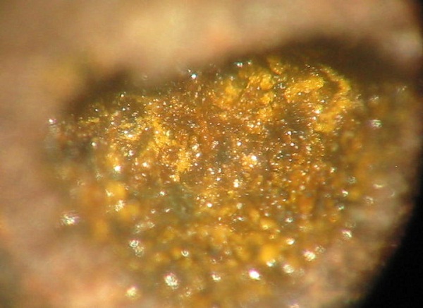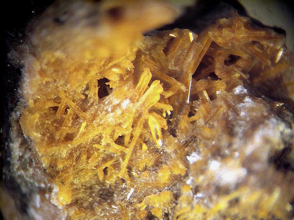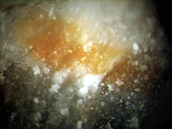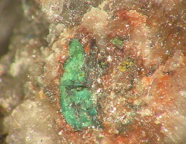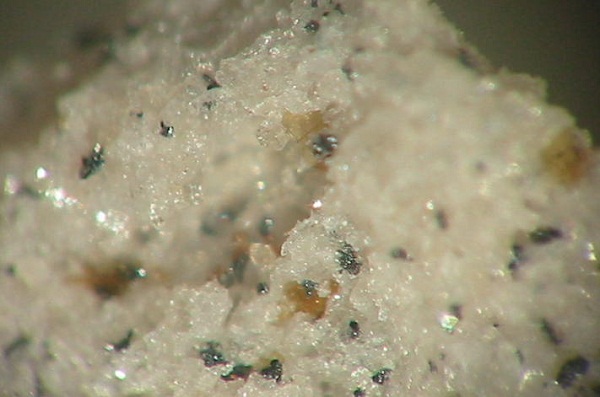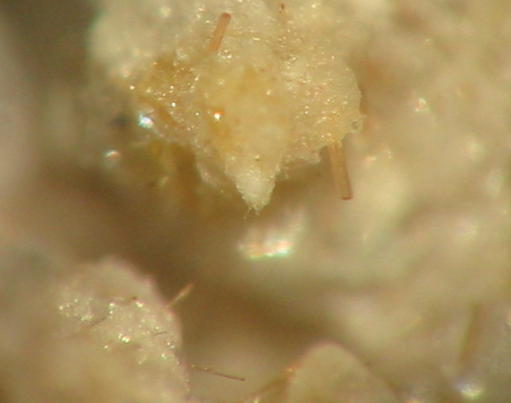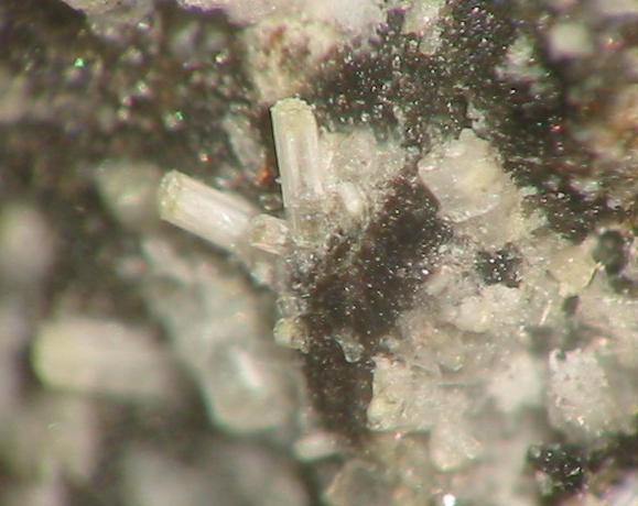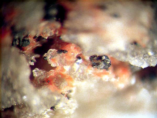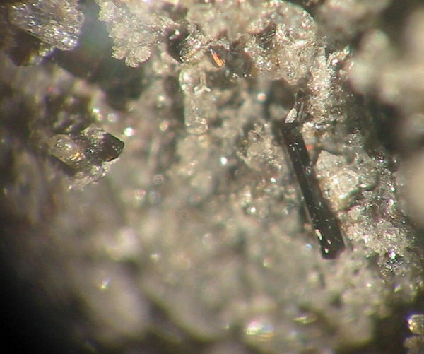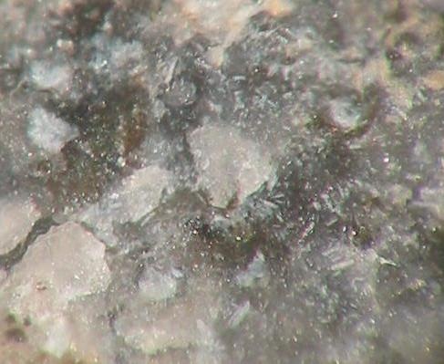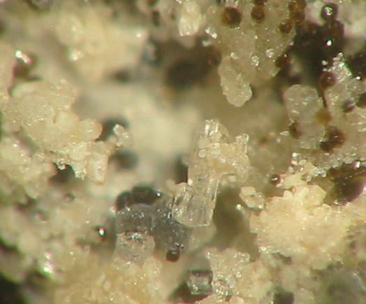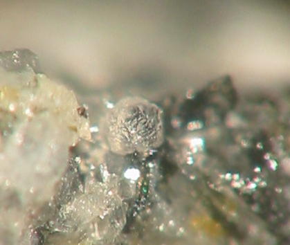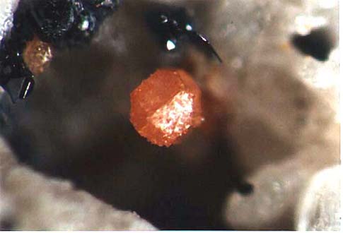 Darin kann man schöne Mineralien, überwiegend in mm-Größe finden (MM), wie z.B. orangefarbene Augit-Nadeln. Außerdem fand man hier auch schon Cordierit in gut ausgebildeten xx über 2 mm sowie Cristobalit-Aggregate von 3 mm Größe. Des Weiteren fand man roten Hämatit, gelbe Hornblende, Magnetit-Kristalle, Tridymit und Rhönit in xx bis 4 mm.