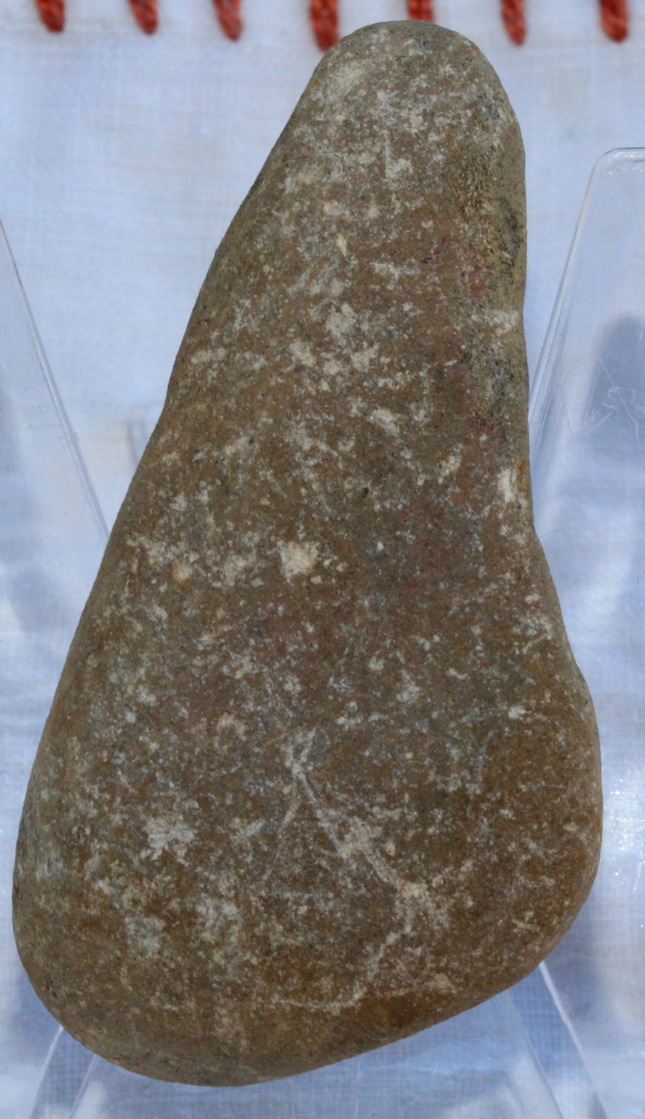 Vermute evtl. Sandstein? Lief vor ein paar Tagen am alten Rhein entlang, da sah ich diesen kleinen mit seinen 29g und erinnerte mich an einen Handschmeichler. So nahm ich diesen mit, weil erdarum bat :grins