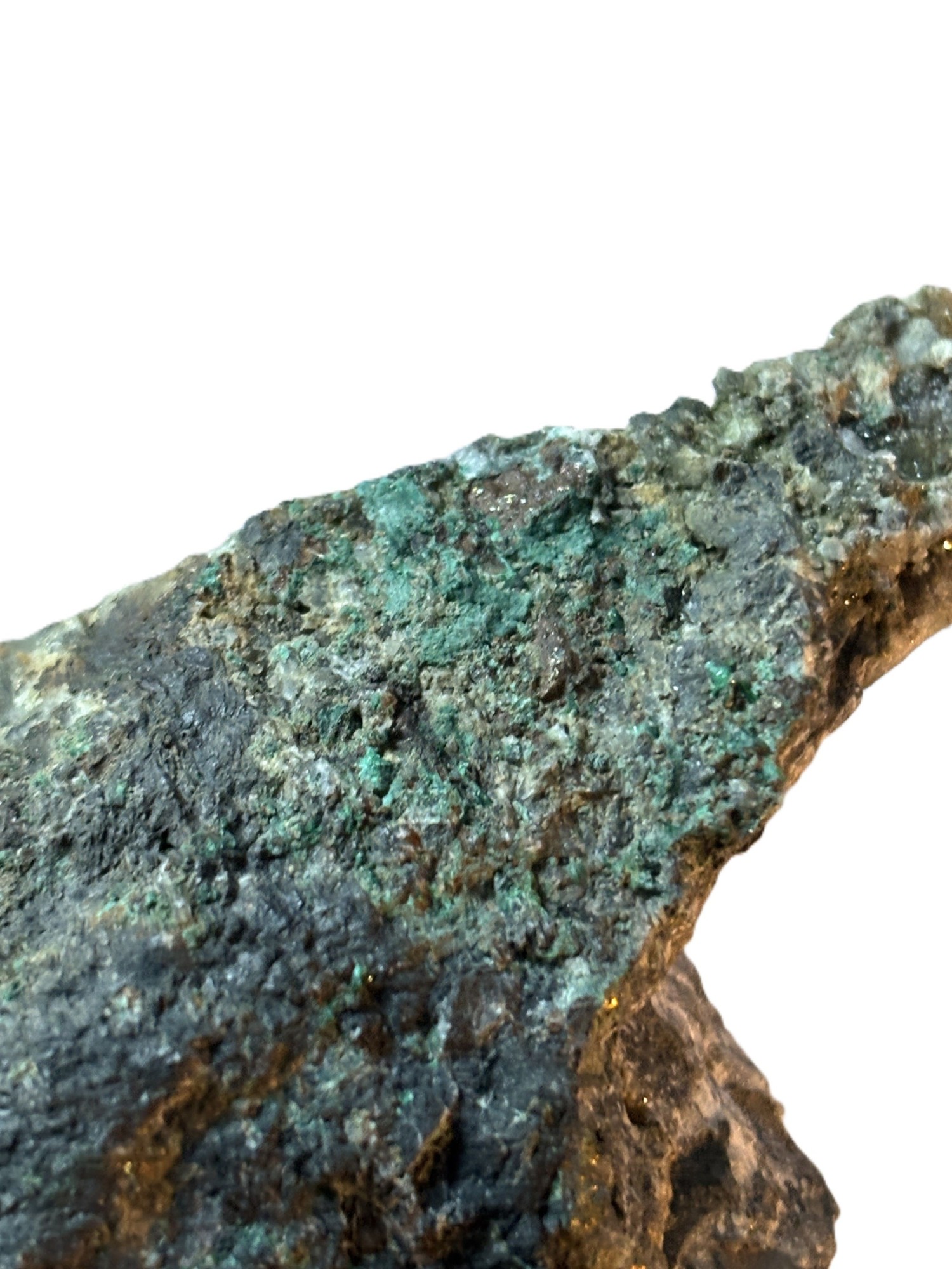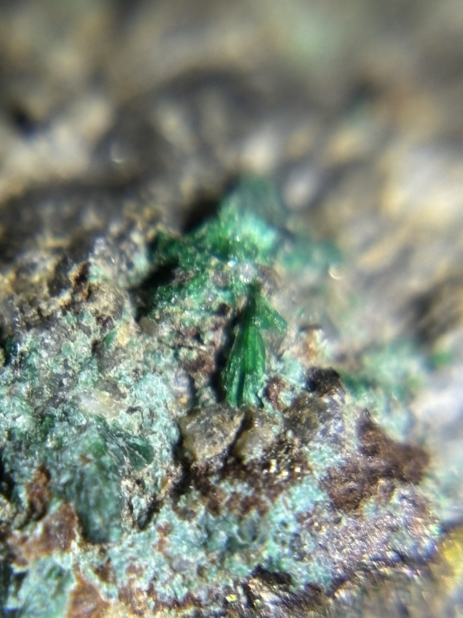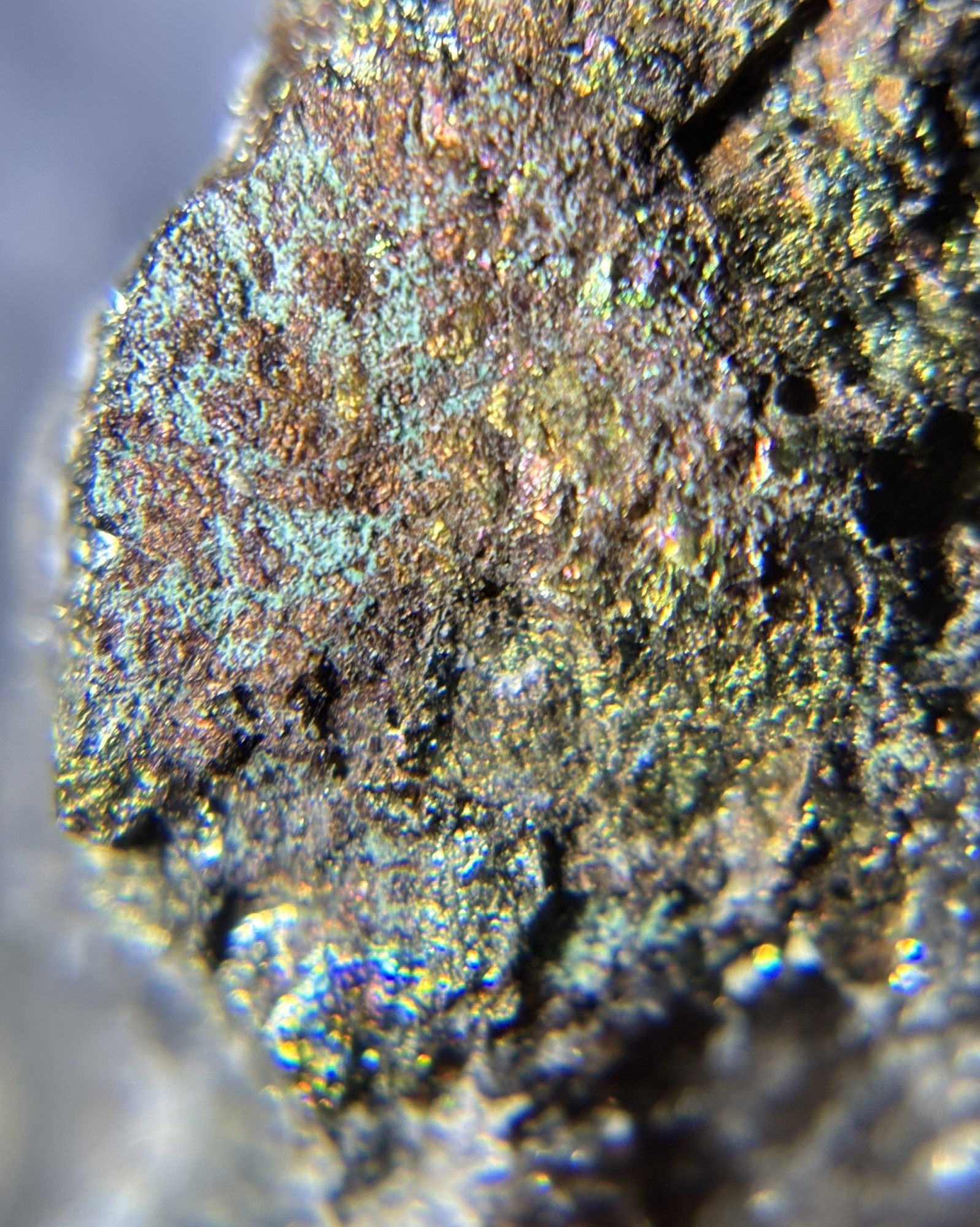 Dann habe wir noch, ich vermute stark Kupfererz gefunden, weil es so grün ist. Die Grube Boxbach wurde früher zur Kupfererzgewinnung betrieben, was dazu passen würde. Auf einer Seite war dann noch etwas metallisch rötlich schimmerndes zuerkennen. Könnte es sich dabei sogar um rein Kupfer handeln? Oder ist das Pyrit mit einem Überzug, der es nur rötlich erscheinen lässt.