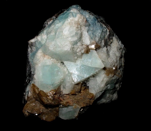 Flurit (derb) in Spalerit - sehr schön unter UV.