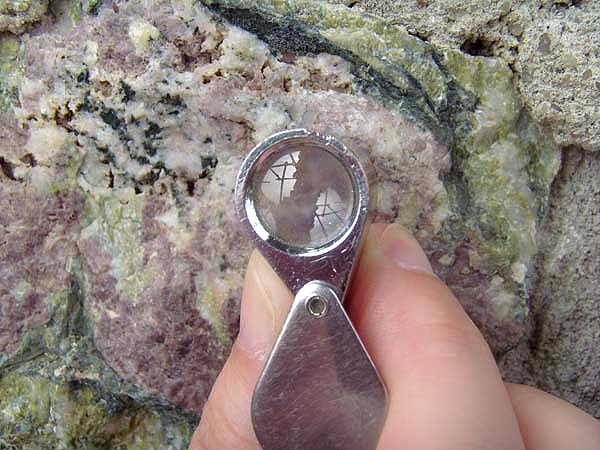Das mittlere Bild zeigt übrigens doch nicht "Riebeckit-Schiefer" sondern Schiefer, der durch Axinit-(Fe) lila verfärbt ist!