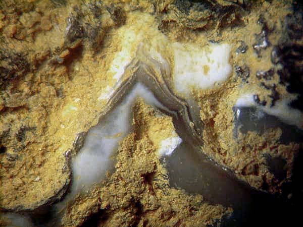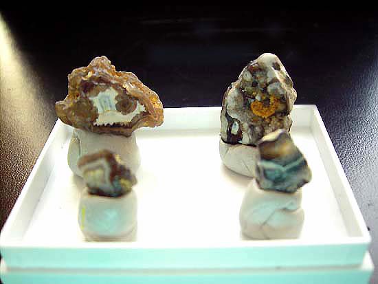Mineralien mit Fundsituation: gefunden - noch in 2004 – Achat (gebändeter Chalcedon) - auch mit konzentrischen Mustern oder mit stalaktitischen Silikatröhren, auch in einigen seiner zahlreichen “Spielarten“, so hauptsächlich ..