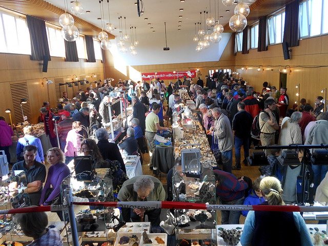 Da der Eintritt frei war - erwarte ich eigentlich auch bei einer Börse, und kostenlose Parkmöglichkeiten gleich vor der Festhalle waren, entstanden auch für Nichtmineraliensammler so keine Kosten und wir konnten unser Hobby auch dem Außenstehenden so etwas nahe bringen.