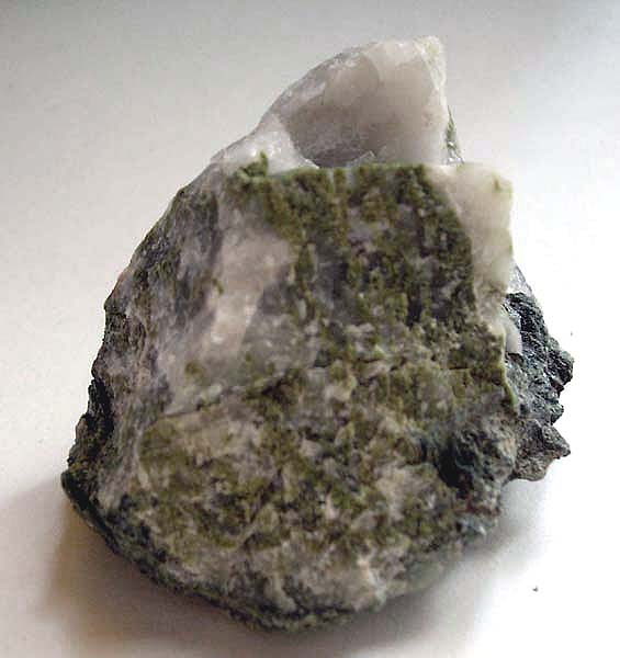 Zu den weiteren Funden der ’Lokalität Lalaria’ gehörten an diesem Tage wenige, ca. 3 x 3 cm große Brocken des Minerals Calcit in Paragenese mit dem Calcium-(Eisen, Aluminium)-Gruppensilikat Epidot. Dieser tritt gelblichgrün und derb auf.