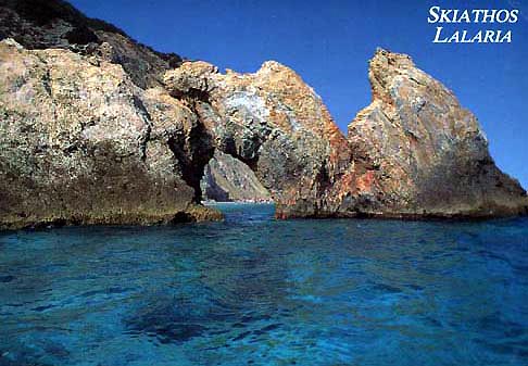 Die Küste von Skiathos hat eine Länge von 44 km, sie verläuft unregelmäßig gezackt mit Ankerplätzen und Buchten, Landzungen und Vorgebirgen, Höhlen und Halbinseln.