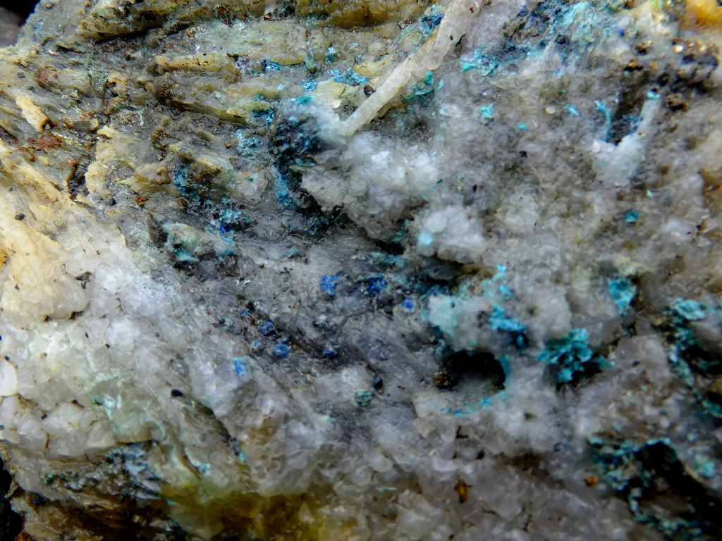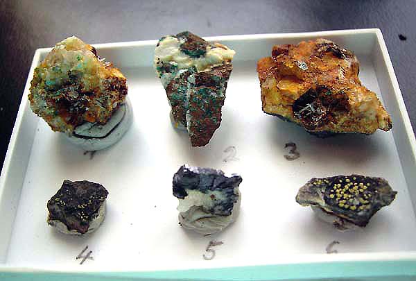 Mineralien: 1994 konnte ich noch finden: Schöne langprismatische Cerussit-Kristalle, Malachit, Brochantit, Rosasit, Galenit (Bleiglanz) u.a.