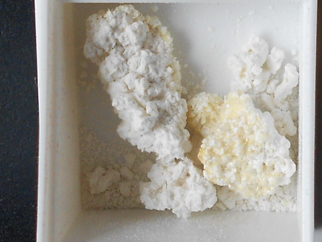 Goslarit - grauweiße Kristalle im Gemenge mit Hydrozinkit