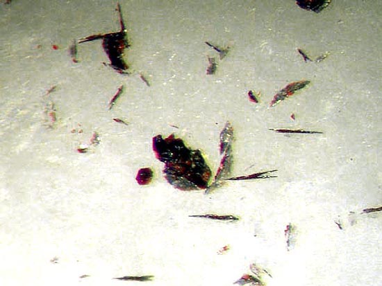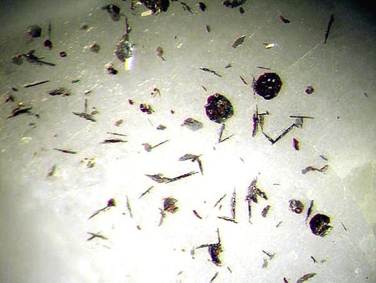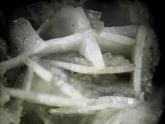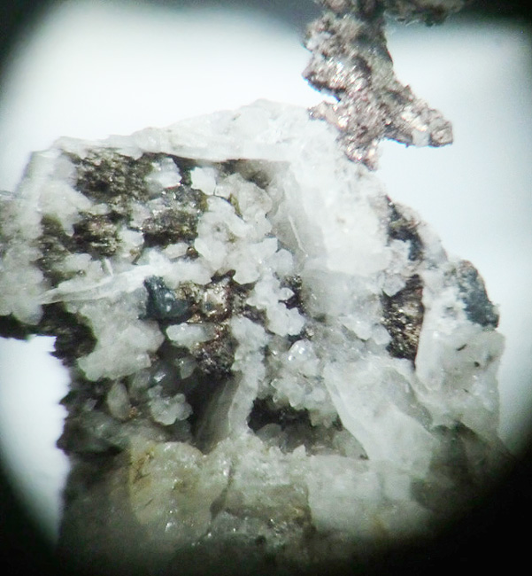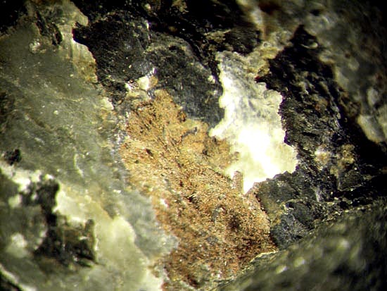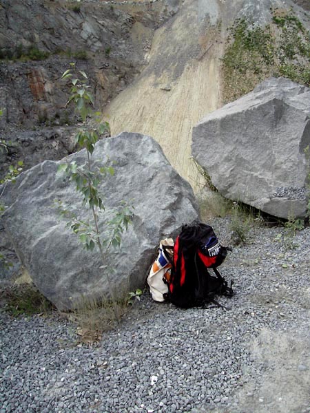 Bei idealem Exkursionswetter mit relativ angenehmen Temperaturen bei reichlich Bewölkung, wenig Sonneneinstrahlung und Windstille, konnte ich zunächst in Brocken des dort abgebauten Tiefengesteins Gabbro einige Kupfervererzungen (vermutlich überwiegend Chalkopyrit / Pyrit) vorfinden sowie nachfolgend einen gut sichtbaren Baryt-Gang, der einige brauchbare Kleinstufen mit z.T. sogar transparenten Baryt-Tafeln bis max. einem Zentimeter Breite erbrachte.