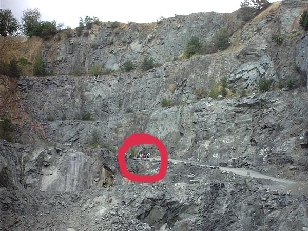Das dort abgebaute Gabbro-Gestein enthält teilweise Sulfid-Linsen, die von einem Baryt-Gang angeschnitten werden, welcher unter anderem Silber- und Quecksilbererze enthält.