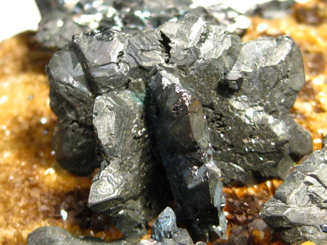Die absolut unbeschädigten Bournonite erreichen 3mm "Größe" und sitzen mit Sideriten auf kleinen Bergkristallen.