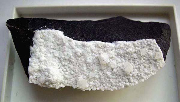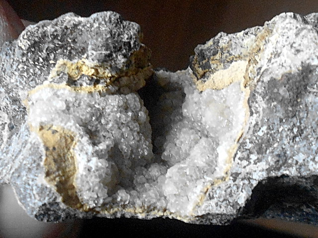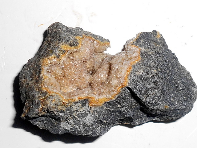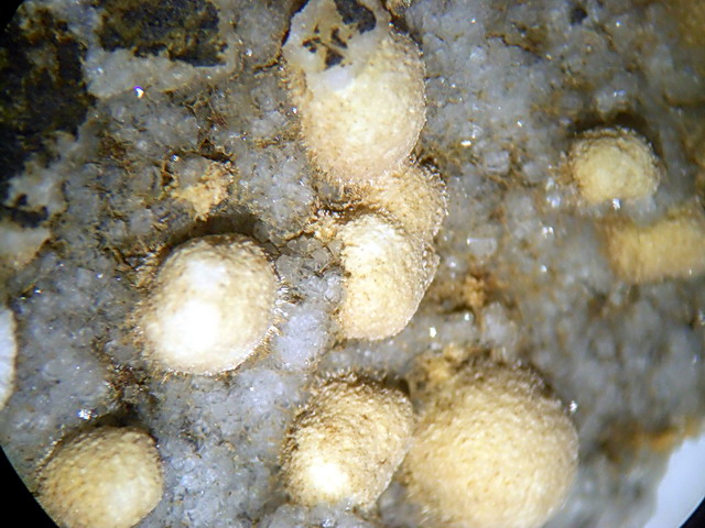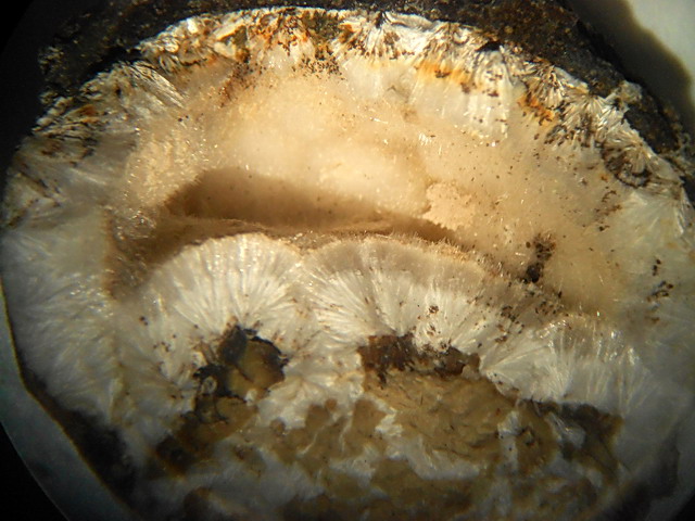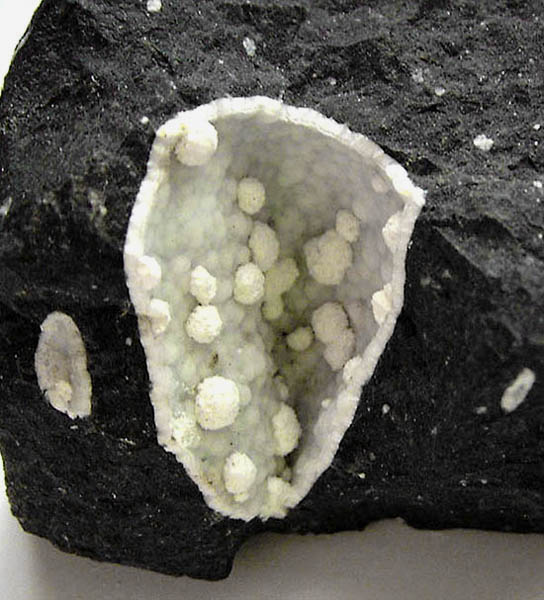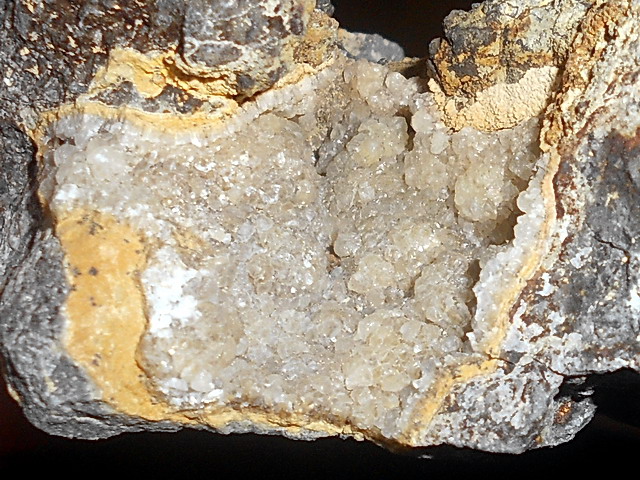 In einer späten Phase haben sich darin hydrothermale Mineralien gebildet, die die Hohlräume teilweise oder völlig ausgefüllt haben.