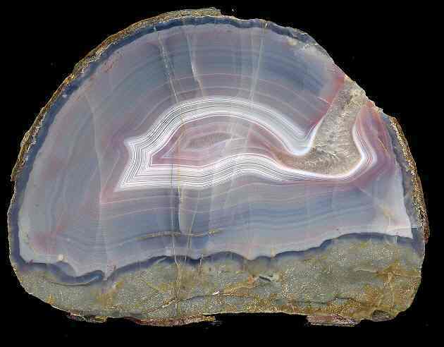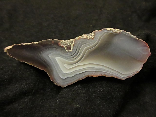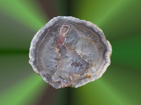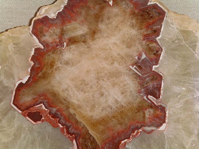 Kristallines Stück mit Binnenachat und feiner dünner Bänderung am Rand.
