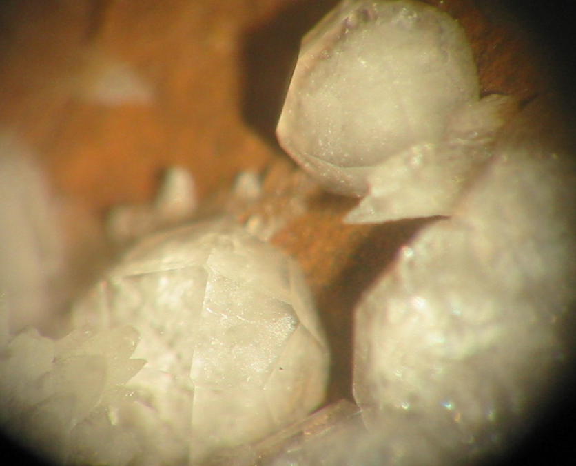 Mineralien mit Fundsituation: Analcim, Calcit, plattige Zinkblende-Kristalle (Sphalerit) bis 1,5 cm.