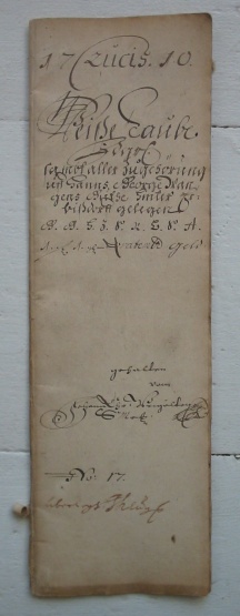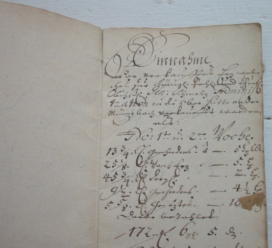Ein sogenannter Ausbeutebogen. In diesen wurden sämtliche Einnahmen und Ausgaben einer Grube in einem Quartal gelistet. Dazu zählt u.a. auch eine Auflistung von Ausbeutezahlungen an die Kuxe haltenden Gewerken sowie alle von der Grube bebauten Gänge. Solche Bögen sind heute sehr selten zu finden. Meistens bestehen sie aus nicht mehr als drei oder vier Blättern, größere Gruben sind fast nie belegt. Das hier gezeigte Exemplar hat bemerkenswerter Weise ca. 30 Blätter, trotzdem es sich um eine vergleichsweise unbedeutende Grube im Freiberger Revier handelt: die "Weiße Taube Fdgrb. sambt aller Zugehörung in Hanns George Wangens Guthe hinter Erbißdorff gelegen". Geschrieben ist es Quartal Crucis anno 1710.