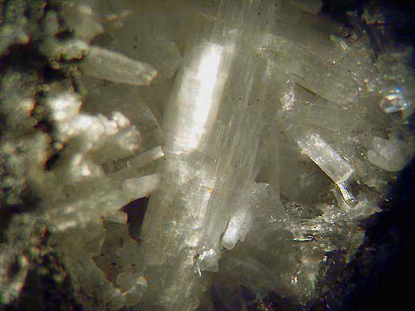 Mineralien mit Fundsituation: Schöne Natrolith-Kristalle und Analcim in Hohlräumen des Basaltes;