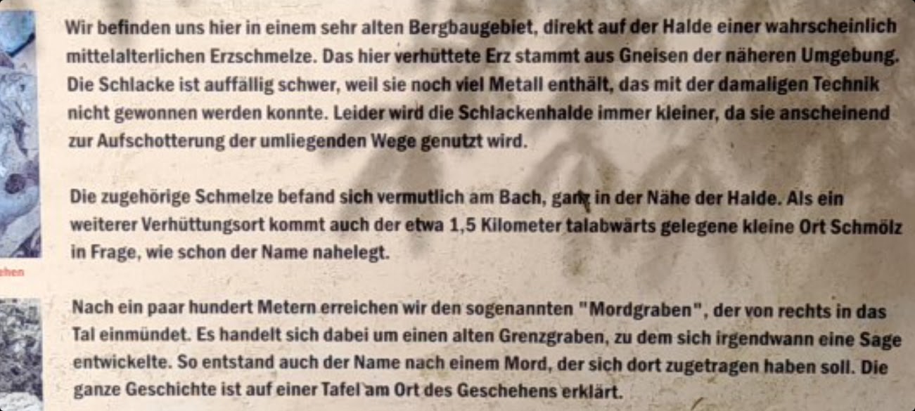 Allerdings gibt es da noch Schlackenhalden in der Nähe des Ortsteils Alte Schmölz.