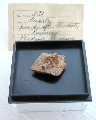 Heute ist dieses Vorkommen vollkommen in Vergessenheit geraten. Allerdings kamen bei der Auflösung der Sammlung der Academy of Natural Sciences Philadelphia einige wenige Stücke auf den Markt. Davon konnte ich ein kleines Stück erwerben, eine Pseudomorphose von Calcit nach Glauberit, die hier abgebildet sei.