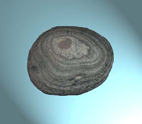 erodiertes Quarzit-Rollstück mit Liesegangschen Ringen von der Rastan Schlucht in Eriwan, Armenien.