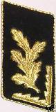 Schwarzer Kragenspiegel ohne Rand auf dem Rockaufschlag, mit entsprechender Biese, darauf einmal Symbol im Eichenkranz in Gold, Mützenschnur in Gold.