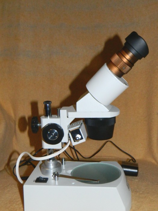 Die meisten Mikroskop-Aufnahmen, die ich heutzutage anfertige, habe ich damals noch mit meiner "Analog"-Kamera, einer Carena Spiegelreflexkamera CX-500, aufgenommen. Ich habe da ein selbstgebasteltes Projektiv plus Projektivhülse als Aufsätze bzw. Adapter zusammengeschraubt und dann auf das Okular meines Zoom-Stereo-Mikroskops GSZ von Zeiss Jena fertig draufgeschraubt..war billiger als das zu kaufen..dann habe ich noch einen "Blaufilter" (absorbiert die Gelbstichigkeit) dazwischengeschraubt. Das GSZ-Mikroskop beinhaltet einen stufenlosen Vergrößerungswechsel im Verhältnis 1:5; Vergrößerungen 10x bis 50x (Standard-Ausrüstung); Vergrößerungen 2,5x bis 160x mit Vorsatzsystem und Okularwechsel. Das Mikroskop hat mich damals unter 1.800 DM gekostet (rd. 900 €). Das war schon preiswert.