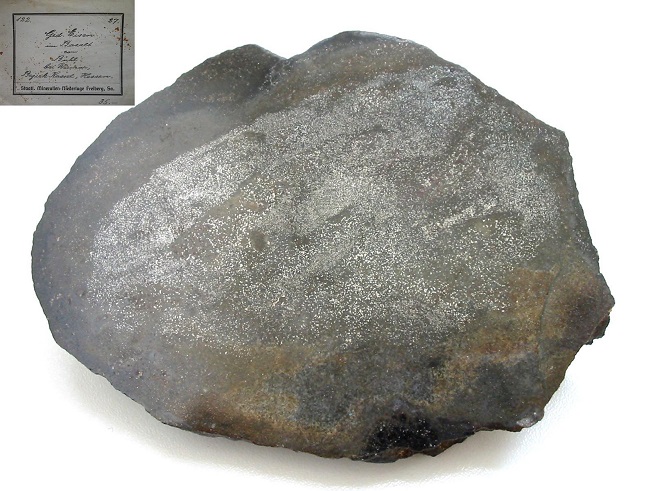 Graphit - C - Kommt in Meteoreisen vor, wo er winzige Schüppchen und Knollen bildet, die beim Auflösen des Meteorits in Säure zurückbleiben.