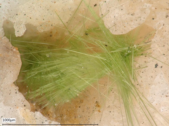 Fotos zeigen einen hervorragenden Eigenfund von Agardit-(Ce) als nadliges Büschel von 7 mm Durchmesser (!) in Quarz-Hohlraum von aus der Grube Clara (Aufbereitung in Kirnbach) sowie mehrere nadlige Büschel von der Majuba Hill Mine, Nevada.